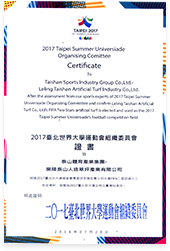 2017台北世界大学运动会组织委员会证书致乐陵球盟会人造草坪产业有限公司
